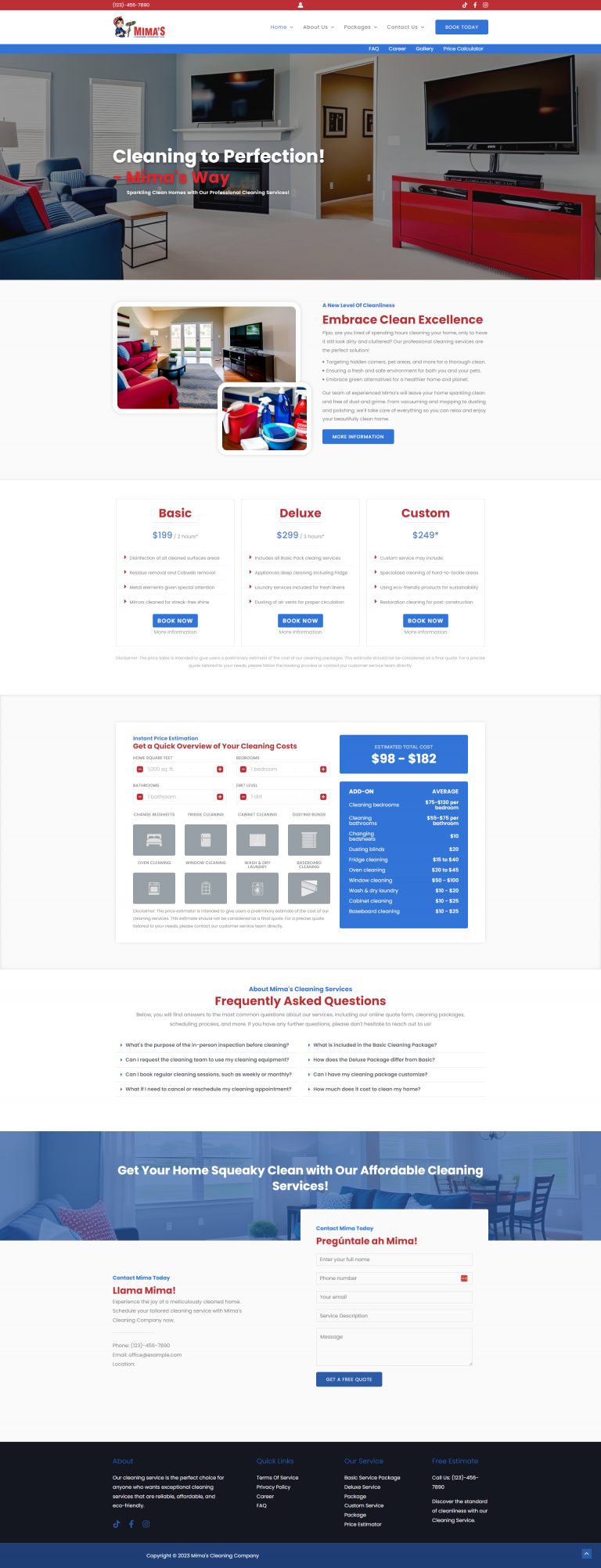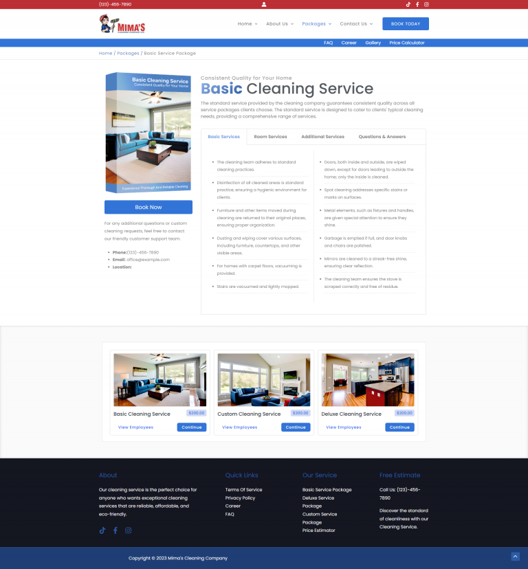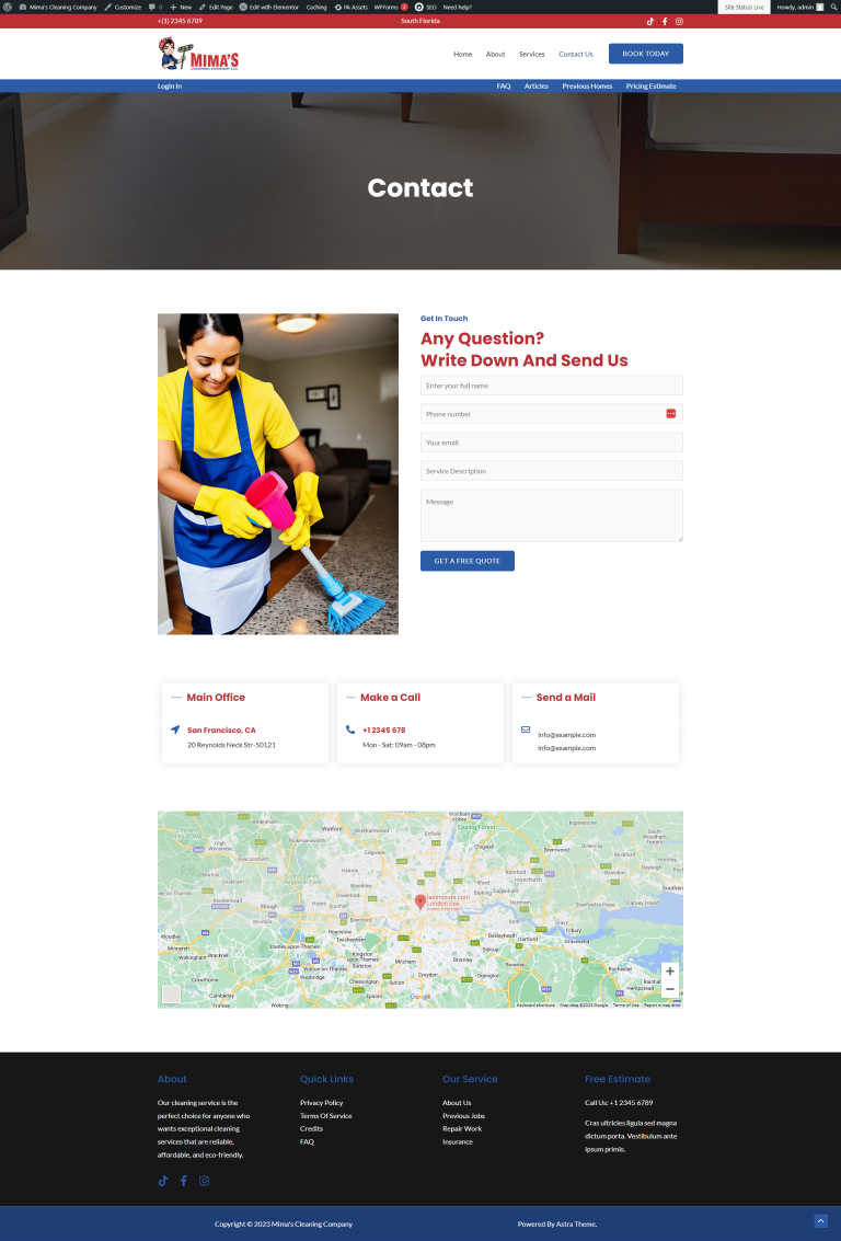 Developed a custom cleaning service booking site using WordPress + Elementor