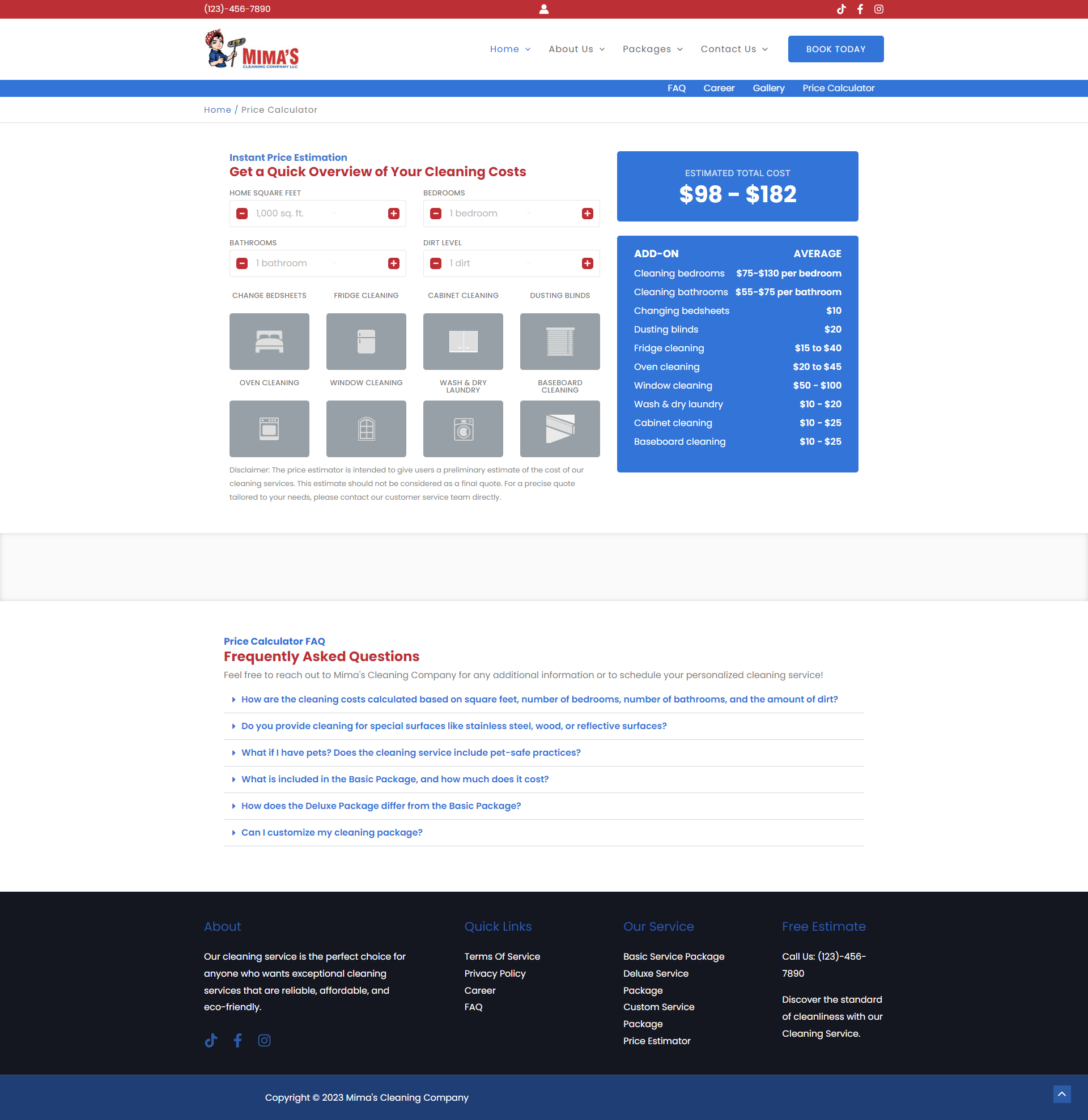 Quick price calculator for services